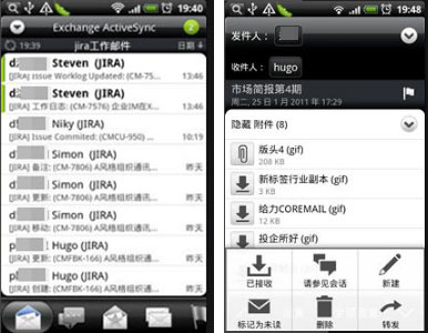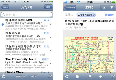 - 完成以上基本设置后,您就可以开始使用Pushmail来进行邮件收发和同步查找邮箱联系人了。
