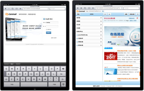 - Coremail iPad适配版本是专门根据iPad特性推出的邮箱版本,其采用了最新的HTML5和CSS3页面技术,提供全新的UI和iPad的交互方式,使用户感受iPad特有的邮件收发体验。